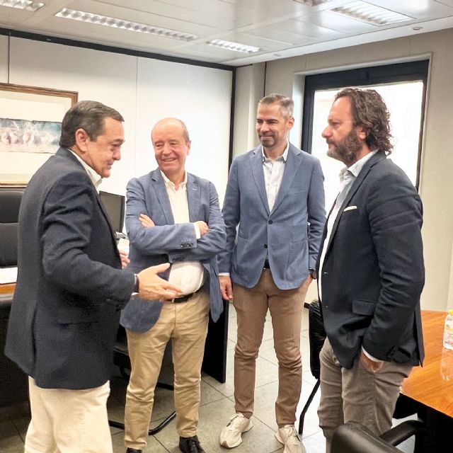 El presidente de CROEM, José Mª Albarracín y su secretario general, Ramón Avilés, se han reunido esta mañana con directivos de la línea de alta velocidad OUIGO para conocer las previsiones de operatividad de la compañía en los próximos meses en la Región de Murcia.