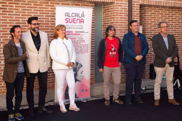 En la rueda de prensa, Santiago Alonso, concejal de Cultura de Alcalá de Henares, destacó que Alcalá Suena se ha convertido “en un referente entre los festivales gratuitos de la Comunidad de Madrid”. En la foto se puede ver, de izquierda a derecha, a Dr. Sapo (ganador de la categoría infantil/familiar), Santiago Alonso (concejal cultura), Isabel Ruiz Maldonado (1º teniente de Alcaldía), César Gallego (presidente Alcalá es Música), Antonio Saldaña (concejal de festejos) y Teófilo Lozano (concejal de Salud).
