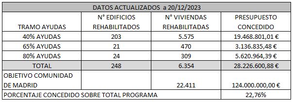 El número de viviendas que han podido ser rehabilitadas gracias a esta ayuda es de 6354, que formaban parte de un total de 248 edificios.