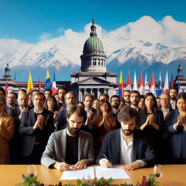 "Nosotros, directivos de organizaciones periodísticas internacionales y nacionales; representantes de asociaciones nacionales de casas periodísticas en diversas naciones de Iberoamérica; participantes todos en los actos en conmemoración del Día Mundial de la Libertad de Prensa de la Organización de las Naciones Unidas para la Educación, la Ciencia y la Cultura (UNESCO), celebrados en Santiago de Chile del 2 al 4 de mayo de 2024, en seguimiento del seminario "El Desarrollo de los Medios de Comunicación y la Democracia en América Latina y el Caribe", que adoptó la Declaración de Santiago hace 30 años en esta misma ciudad, del 2 al 6 de mayo de 1994;