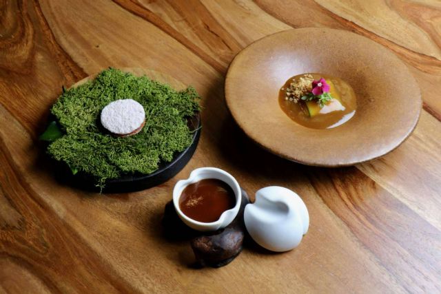 En su restaurante gastronómico MU.NA, el chef nacido en El Bierzo descubre su alta cocina con un menú que invita a venir desde muy lejos, solo por el placer de conocerlo. Comienza la experiencia con un original `Pan chino de botillo´, donde se encuentra la esencia del sabor de uno de los platos más emblemáticos de esta tierra, llevado a un formato contemporáneo de dos bocados. Para seguir, aparece la buena huerta local, donde sus agricultores trabajan en biológico para poner en la mesa cuatro propuestas de Samuel, `Tartar de tomate y su agua´, `Cebolla´ una de sus grandes creaciones que sigue en carta, `El viajero Marco Polo´ que refleja claramente el espíritu del cocinero que le permite asimilar cocinas de otros lugares del mundo en sus muchos viajes, y para terminar con este capítulo vegetal su `Alcachofa mar y tierra´. Dentro de sus planteamientos de sostenibilidad, el chef es determinante cuando explica que hay que plantearse un cambio importante en la manera de comer pescado, por ello su plato `Lubina con pote berciano´ se elabora con la lubina atlántica Aquanaria, producto de acuicultura en pleno Atlántico, que evita la sobreexplotación de los mares. Con una idea similar, presenta en carta su `Solomillo y pino´, elaborado con carne de un ganadero local. Con ello, pretende apoyar al pequeño productor del Bierzo para dar valor a su producto e impedir su desaparición. Y termina su menú degustación con `Las nubes del Bierzo´ y `Déjà vu´, el punto dulce sin empalagar que deja a sus comensales con el mejor sabor de boca. En la sala, el nuevo director y sumiller Dani Giganto ofrece a los clientes la oportunidad de conocer grandes vinos del territorio, nacionales e internacionales, con su gran conocimiento y años de experiencia en destacadas salas gastronómicas.