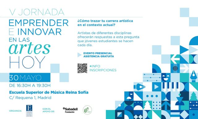 "Emprender e Innovar en las Artes Hoy" es una jornadadiseñada especialmente para jóvenes de todas las disciplinas artísticas en la que conectar, aprender y crecer juntos. El encuentro, de carácter presencial y gratuito, se celebrará de 16:30h a 19:30h, en el Auditorio Sony de la Escuela, siendo necesaria la inscripción previa aquí.