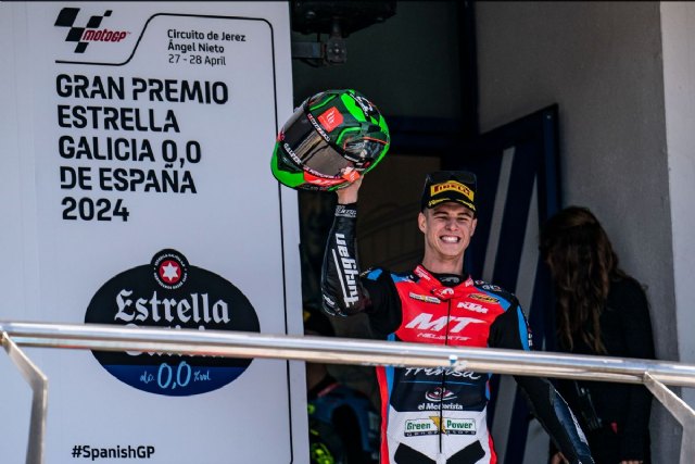 El piloto de Moto3 ha logrado reponerse ante la afición local del complicado fin de semana que sufrió en Austin, donde las caídas y los problemas técnicos le impidieron brillar. Esta vez, una inteligente gestión de los neumáticos le ha permitido hacer una carrera de menos a más para bañar su MT KRE+ de prosecco en el podio de Jerez.
