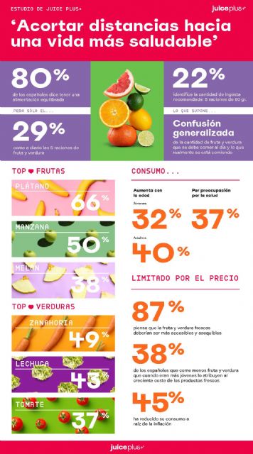 En los últimos años, las tendencias de estilo de vida saludable han evolucionado para abordar de manera más completa la salud física, mental y emocional. Además, hemos visto cómo se ha incrementado, de forma significativa, la conciencia sobre la importancia de mantener una alimentación equilibrada. Y, a pesar de ello, el último estudio de Juice Plus+ -la gama nutricional de complementos alimenticios para conseguir un estilo de vida sano y equilibrado- evidencia que el consumo medio mundial de frutas y verduras es inferior a las cantidades recomendadas y que existe una confusión generalizada entre lo que se come y lo que se debería comer.