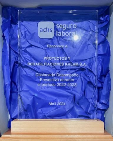 KALAM Chile, especialistas en el ámbito de la restauración y conservación patrimonial refleja claramente su comprometida dedicación a las labores preventivas recibiendo el reconocimiento "Destacado Desempeño Preventivo durante el periodo 2022-2023" por demostrar su total compromiso con la gestión preventiva durante el pasado ejercicio.