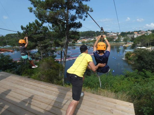 AVENTURA DAKART consta de variadas, emocionantes y divertidas actividades a lo largo de todas sus instalaciones, tales como canoas, bicicletas acuáticas, tirolina de 300 m que cruza el lago, tobogán gigante acuático de más de 5 m de altura, circuito de Aquakarting para todas las edades, tobogán en seco de 60 m, rutas en Mini Jeep por un circuito entre árboles de 500 m de recorrido, minigolf de 9 hoyos, circuitos entre árboles con puentes tibetanos y pasos por cuerda con 3 niveles de dificultad, rocódromo de iniciación, zonas de juegos infantiles, ajedrez gigante…, además de una amplia oferta en su cafetería self service, su kiosco-bar o en su food truck donde comer y refrescarse, o disfrutar de las magníficas vistas de la cascada artificial del lago, o desde los miradores contemplando las vistas de las islas de Ons y Onza.