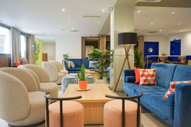 El proyecto de Furtivo ha renovado completamente el espacio para adecuarlo a las directrices de diseño de Livensa Living. A través de cambios en la disposición del espacio, el mobiliario, la decoración y la pintura, la marca Livensa baña todas las zonas comunes del centro a través de colores vivos y estampados juveniles.