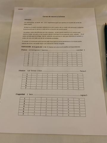 Formulario para la valoración de la carne en la cata a ciegas