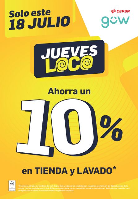 Durante este día, los miembros del programa de fidelización Cepsa Gow podrán beneficiarse de un 10% de descuento en tienda y lavado de coches en forma de saldo por sus compras en las estaciones de servicio Cepsa adheridas.