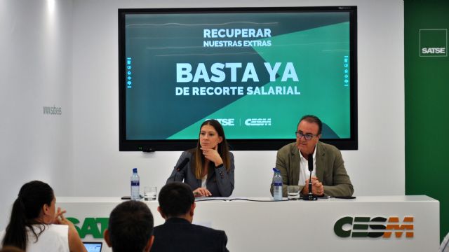 El secretario general de CESM, Víctor Pedrera, y la presidenta de SATSE, Laura Villaseñor, han explicado, en rueda de prensa, las perjudiciales consecuencias que tiene en los bolsillos de médicos, enfermeras y fisioterapeutas un recorte salarial "injustificado y discriminatorio" que contraviene lo establecido en el Estatuto Marco y en el Estatuto Básico del Empleado Público.