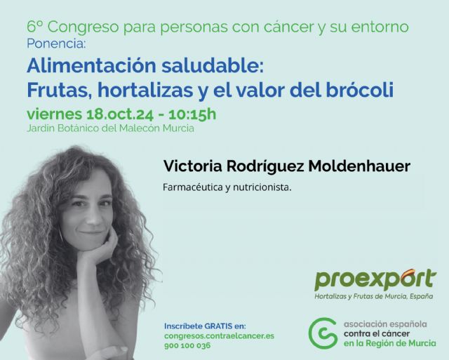 La Asociación de Productores-Exportadores de Frutas y Hortalizas de la Región de Murcia (Proexport) se suma de forma activa al 'VI Congreso para Pacientes con Cáncer y su Entorno', que la Asociación Española Contra el Cáncer de Murcia celebra, del 17 al 19 de octubre, en el jardín botánico del Malecón. Una cita de gran relevancia para la comunidad de pacientes y sus familias, abierta al público general.