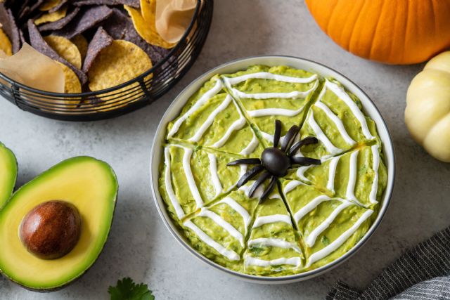 Decora tu bowl de guacamole a tu gusto, para adaptarlo a tu fiesta temática de Halloween.