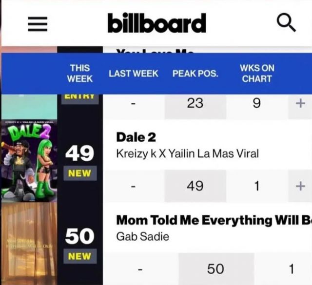 El 2024 sigue marcando un año de grandes éxitos para los artistas urbanos Kreizy K y Yailin La Más Viral. Ambos han logrado un hito significativo al ingresar al Top 50 de los prestigiosos Billboard con su colaboración "Dale 2".