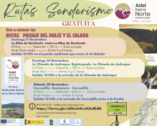 Mediante tres salidas que se llevarán a cabo, en tres fines de semana sucesivos, los días 17, 24 y 30 de noviembre. El número máximo de participantes es de 20 personas por cada ruta