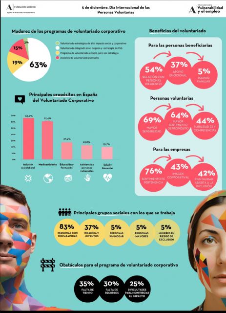 En primer lugar, las personas con discapacidad son el grupo social más estratégico y en el que las organizaciones están poniendo más foco. En concreto, un 83,3% de las empresas encuestadas involucra a su plantilla en actividades de voluntariado corporativo que les permiten convivir y acompañar a personas con discapacidad. "Este segmento de la población constituye un gran termómetro para medir el grado de inclusión de una organización, siendo las acciones de voluntariado una apuesta estratégica para tender puentes con la comunidad, fortalecer el sentido de propósito y avanzar en la contratación de personas con discapacidad (en concreto, en el cumplimiento de la cuota del 2% que marca la legislación). En muchas ocasiones, las empresas tienen dificultades para incorporar personas con discapacidad debido al factor cultural -desconocimiento o falta de experiencias previas- y encuentran en el voluntariado una excelente vía para facilitar el acercamiento y la comprensión del potencial de las casi 150.000 personas con discapacidad que buscan trabajo en España"- comenta Francisco Mesonero, director general de la Fundación Adecco.