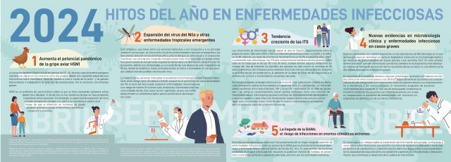 El encuentro ha servido para presentar el documento "Nuevos desafíos y evidencias en el manejo de las enfermedades infecciosas. Perfilando el futuro de la especialidad en España", que propone una hoja de ruta para abordar los nuevos retos en estas patologías. Entre otros, el aumento del potencial pandémico de la gripe aviar H5N1 a través de la transmisión entre mamíferos en Estados Unidos; la tendencia creciente de ITS como la gonorrea, la clamidia o la sífilis; las infecciones asociadas a eventos climáticos extremos, como la DANA; o la expansión de vectores de enfermedades tropicales como mosquitos o garrapatas a nuevas zonas geográficas, con la posibilidad asociada de zoonosis.