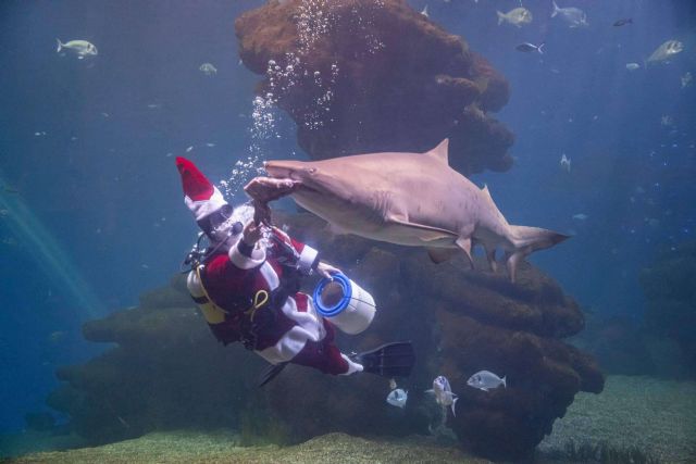 Papa Noel y los Reyes Magos visitan y dan de comer a los tiburones: Esta tradición navideña de Palma Aquarium ofrece a los visitantes una visión única de esta interacción.
