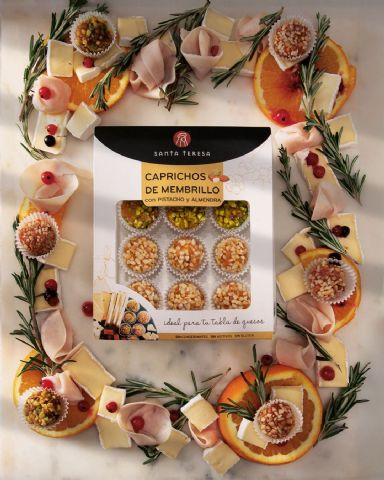 Con estas "bolitas" de membrillo recubiertas a mano, una a una, con almendras y pistachos, Santa Teresa reinventa el membrillo clásico y lo revoluciona, adaptándolo a las nuevas necesidades y gustos del consumidor moderno. Este producto innovador no solo mantiene la esencia del membrillo tradicional, sino que nos lleva a explorar nuevas posibilidades culinarias, convirtiendo su consumo en una experiencia única. Su delicada textura y contraste de sabores hacen de él el complemento ideal para maridar con cualquier tipo de queso. Sorprendente también es su combinación con foie o como ingrediente especial en cualquier ensalada.