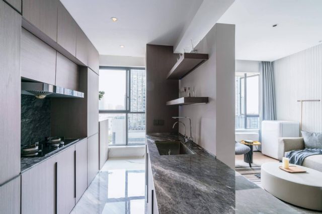 El mobiliario juega un papel crucial en esta transformación. Los muebles modulares y las islas con múltiples funciones son clave para optimizar el uso del espacio. Las encimeras de materiales como el cuarzo, la cerámica o superficies recicladas destacan por su durabilidad, estética y bajo mantenimiento. Además, los acabados mate en tonos neutros como gris, beige y blanco siguen siendo una elección popular por su capacidad para combinar con diversos estilos.