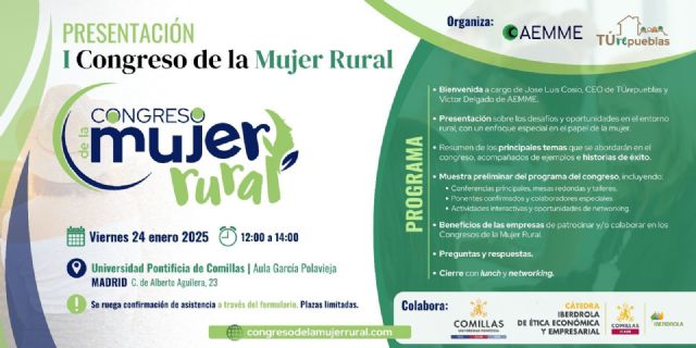 AEMME y TÚrepueblas presentan el I Congreso de la Mujer Rural en la Universidad Pontificia de Comillas