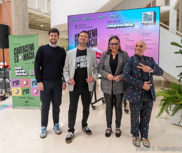 Coincidiendo con el "Día Internacional del Mago" el Concejal de Cultura Nacho Jáudenes, la Directora General de Competitividad y Calidad Turística de la Comunidad Autónoma, Eva Reverté, el Director de Cultura Eugenio González y el Director del Festival AbelMagia han presentado esta mañana en el Luzzy la 3° Edición del Festival Internacional "Cartagena es Magia".