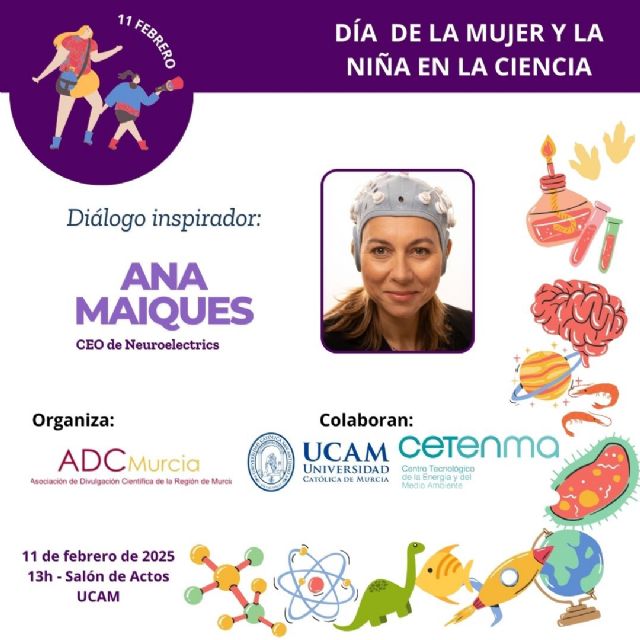 El próximo martes 11 de febrero, con motivo de la Celebración del 'Día mundial de la Mujer y la Niña en la Ciencia', la Asociación de Divulgación Científica de la Región de Murcia ha organizado un encuentro con Ana Maiques, CEO de Neuroelectrics, una empresa con una visión audaz de transformar nuestra interacción con el cerebro a través del desarrollo de tecnologías pioneras para monitorizar y estimular este órgano vital.