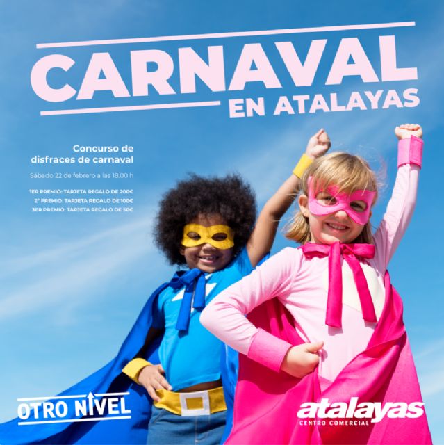 El centro comercial Atalayas va a celebrar el Carnaval por todo lo alto centrando su atención en los más pequeños de la casa. De esta forma, organiza el 22 de febrero, a las 18 horas, un desfile y un concurso de disfraces en el que podrán participar niños y niñas con edades comprendidas entre los 3 y los doce años, bien sea a título individual o por medio de sus centros educativos, asociaciones, comparsas o grupos.