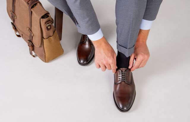 Velázquez es un botín bajo de vestir en piel de serraje y con cordones redondos de algodón. Cuenta con un tacón de 4 cm y con una plantilla extraíble que genera una gran comodidad a la hora de andar.