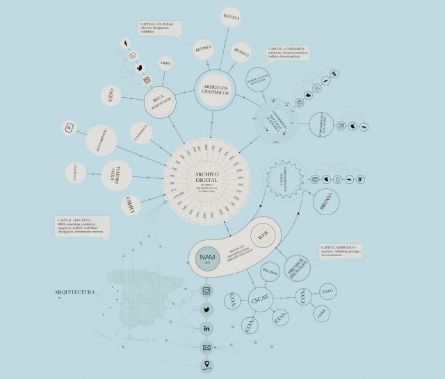 NAM funciona asimismo como un archivo digital matrístico en abierto y cooperativo, a través de un activismo transmedial (nuevos y viejos medios, redes sociales, artículos científicos, documentales, etc.). Contribuye a la consecución del ODS 5, igualdad de género, completando ausencias en los relatos hegemónicos que ignoran las obras realizadas por arquitectas, alejadas de los focos mediáticos. Y mostrando otras maneras de entender y ejercer la profesión, sirviendo referentes y brindando una comunidad a la que sumarse libremente.