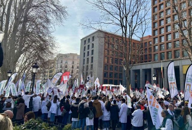 Tanto en la concentración ante el Congreso de los Diputados del lunes, 10 de febrero, como en la protesta frente al Ministerio, este jueves, así como en las diferentes concentraciones realizadas en otras Comunidades Autónomas, el colectivo médico ha dicho no ala imposición de medidas inaceptables que atentan contra los derechos de los facultativos y dificultan aún más la ya precaria situación de la sanidad pública.