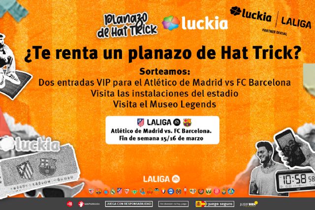 Luckia, en colaboración con LALIGA, lanza El Hat Trick, una iniciativa que hará del partido del Atlético de Madrid contra el FC Barcelona una experiencia inolvidable para los apasionados del fútbol. En el sorteo de esta experiencia se concederá una entrada VIP doble para el encuentro liguero de la jornada 28, una visita guiada al estadio rojiblanco y una entrada doble al museo de fútbol LEGENDS, con vuelo y hotel incluidos