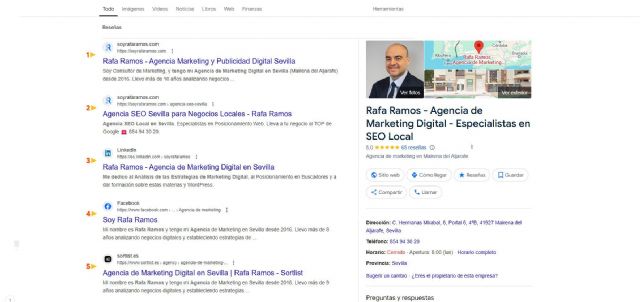 Con más de 12 años de experiencia en marketing digital y 6 años consolidando su propia marca, Rafa Ramos ha logrado nuevamente el primer puesto en Google para 'Agencia SEO Sevilla' en 2025. Este hito, que se extiende a términos estratégicos como 'Agencia Marketing Digital Sevilla' y 'Agencia Publicidad Digital Sevilla', confirma su posición como referente en SEO local en España