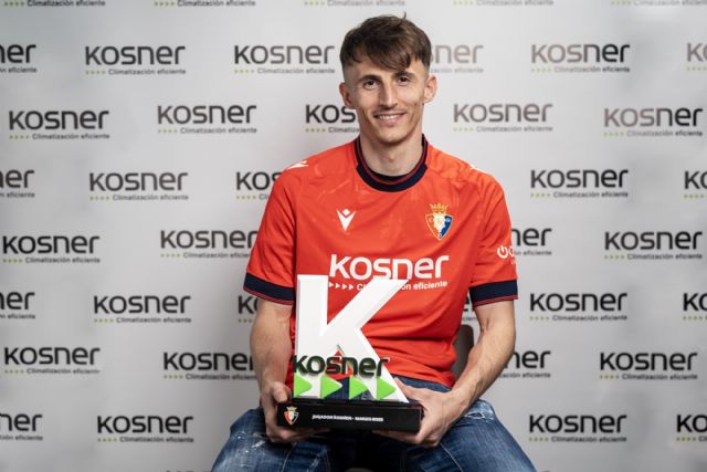Pamplona, 11 de abril de 2025 - El delantero croata Ante Budimir continúa viviendo un gran momento de forma, lo que le ha permitido lograr su segundo trofeo como 'Jugador Kosner del mes' esta temporada. El atacante ha logrado 38 puntos y se ha impuesto en una apretada votación a Aimar Oroz, que ha obtenido 36, mientras que el podio lo ha cerrado Sergio Herrera, con 29.