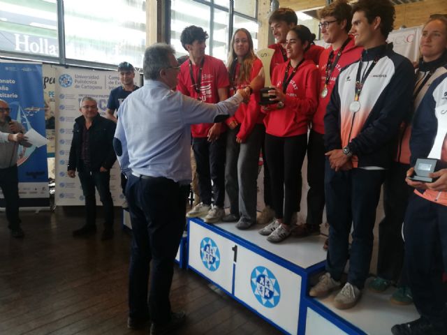 El equipo de la UPCT estuvo formado por Lucía Hernández y Salva Roig, estudiantes de la Escuela de Navales; Carmen Ruiz, de Arquitectura; Rodrigo Budia, de ADE y Andrés Palou, de Ingeniería Química Industrial. Todos son regatistas federados y han formado este año el equipo ganador del Trofeo Rector de vela de la UPCT.