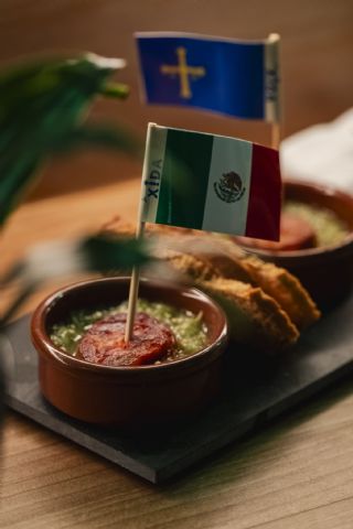 Y, para las que quieran disfrutar de su carta fusión podrán probar platos clásicos de cada país de origen, como el chorizo asturiano a la sidra o el guacamole "de mamá", pero también platos que son la mezcla de ambas, como el jugo de carne preparado, que es un concentrado de caldo de carne de ternera asturiana acompañado de cebolla, chile serrano, cilantro, lima y salsas negras o la torta de cachopo 'El Xidu', el más reconocido de la carta: un cachopo entre panes con frijoles, guacamole, chipotle y tomates asados.