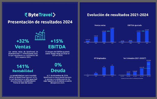 ByteTravel (SCBYT) ha presentado sus resultados correspondientes al ejercicio 2024, confirmando una trayectoria poco habitual en el ecosistema tecnológico europeo: crecimiento orgánico sostenido, rentabilidad elevada y disciplina financiera. Alcanza un ROIC del 141%