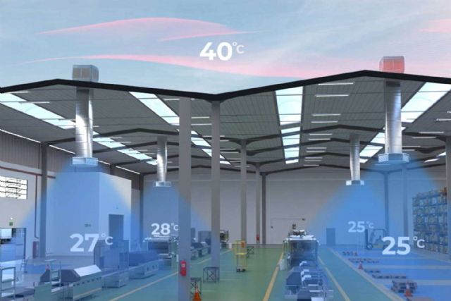 La propuesta de HI!COOL no solo destaca por su enfoque sostenible, sino también por la integración de tecnología inteligente. A través del sistema HI! Control, los responsables de planta pueden monitorizar en tiempo real parámetros como la calidad del aire, el consumo energético y la humedad relativa, permitiendo así ajustar el sistema de manera precisa según las necesidades de cada espacio o turno de trabajo.