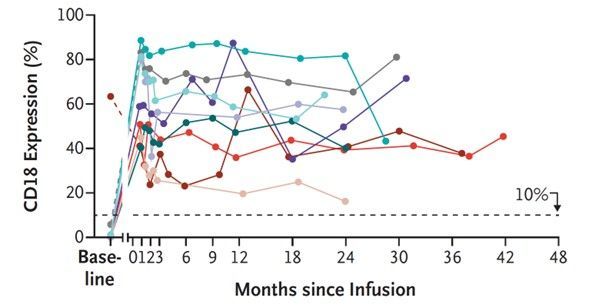 Ante esta situación, los investigadores del CIEMAT, CIBERER y IIS-FJD trabajaron conjuntamente para desarrollar una terapia génica que corrigiera el defecto genético en las células madre hematopoyéticas de los pacientes. El ensayo clínico, que incluyó a pacientes en Estados Unidos, Reino Unido y España, demostró que la terapia génica era segura y eficaz. Los pacientes tratados mostraron una restauración significativa de la función inmunológica, con una mejora notable en la capacidad de sus leucocitos para migrar a los sitios de infección.