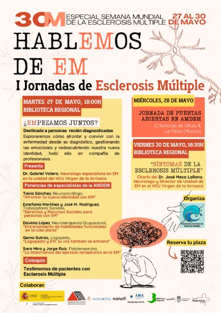La Asociación Murciana de Esclerosis Múltiple (AMDEM) convoca a los medios de comunicación a la presentación oficial de "HablEMos de EM", las primeras Jornadas de Esclerosis Múltiple de la Región de Murcia. Esta rueda de prensa se enmarca en la Semana Mundial de la Esclerosis Múltiple y tiene como objetivo dar a conocer esta iniciativa pionera, que se celebrará del 27 al 30 de mayo. Las jornadas están diseñadas para ofrecer un espacio abierto de información, apoyo y visibilización de la Esclerosis Múltiple, abordando tanto los aspectos médicos como los sociales y emocionales de la enfermedad.
