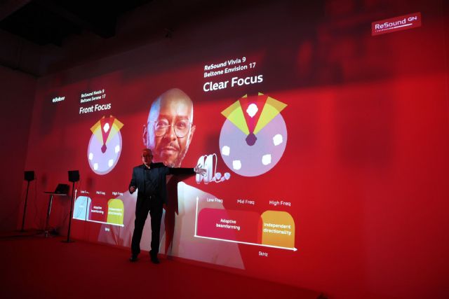 La propuesta de GN fue clara: mostrar que la tecnología auditiva más puntera no solo mejora la audición, sino que lo hace sin renunciar a la sensibilidad, a la emoción, a la vida misma. En un entorno cuidadosamente ambientado, los participantes recorrieron ambas salas: arriba, Beltone -Manuel Yuste, director de Producto de Grupo GN España- presentaba Envision entre cielos azules y un ambiente naif que culminó con la irrupción de un coro góspel en directo que previamente había sido escuchado en una demostración. Abajo, ReSound -Miguel Aranda, product marketing manager en ReSound- desvelaba Vivia en un escenario de pasión y potencia, con el sonido de una Harley Davidson atravesando literalmente la sala, y dejando el característico olor a gasolina, para demostrar las capacidades de filtrado en entornos extremos.