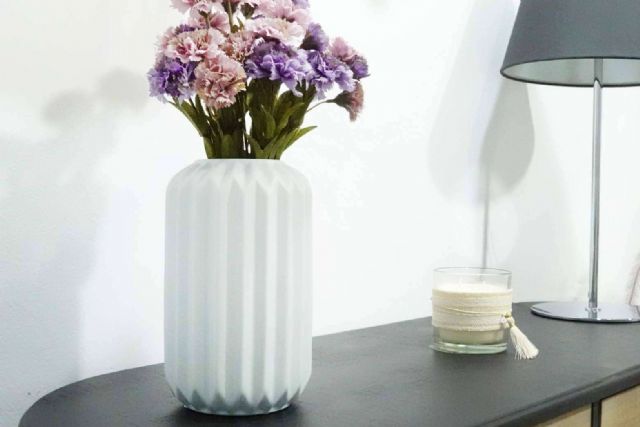 Para maximizar el impacto visual de las flores decorativas, Hogar y Más pone a disposición una amplia gama de jarrones y floreros. Destacan propuestas como el jarrón decorativo moderno de vidrio con tulipanes blancos de 29 cm, que combina sencillez y elegancia, o el jarrón de cerámica blanco abstracto con eucalipto de 37 cm, ideal para composiciones contemporáneas.