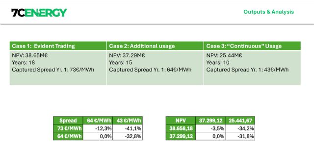 A partir de un caso base que combina spreads de precios fijos con la participación en el mercado de terciaria y varias estrategias de explotación dadas, Adiego ilustró cómo diferentes decisiones operativas pueden afectar a la rentabilidad de los proyectos. Por ejemplo, aumentar la intensidad de uso de la batería de dos a tres ciclos diarios puede acortar su vida útil en tres años. Sin embargo, el impacto en el valor presente neto (VPN) del proyecto sería relativamente limitado, con una reducción de apenas el 3,5%, a pesar de una caída del 12% en los spreads capturados. Según Adiego, este ejemplo pone de manifiesto que el efecto temporal de las inversiones es más relevante de lo que normalmente se piensa.