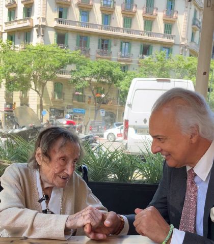 En este sentido, el doctor realizó en Barcelona una entrevista clínica a Angelina Torres, que a sus 112 años vive con una mente positiva, mucha alegría, gran vitalidad, se encuentra con plenas facultades mentales y con una memoria envidiable. Según ella, el secreto es "ayudar a los demás con las manos abiertas", una dieta sana y dormir con la conciencia tranquila. Es flaca, ha perdido un poco de movilidad, típico de su edad. Su colesterol está perfecto, al igual que su frecuencia cardíaca. Eso sí, de vez en cuando le encanta tomarse un chocolate con churros en la churrería cercana a la Sagrada Familia, señala De la Peña. Su hija y su nieta Gemma son dos tesoros que la cuidan con esmero, señala De la Peña.