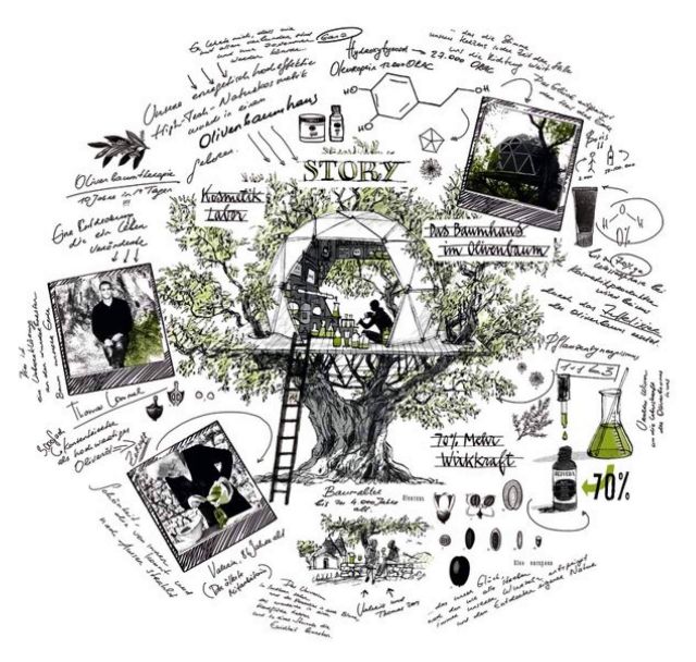El comienzo de esta historia lo cuenta una casa en un árbol, situada entre estos magníficos olivos de montaña. Allí fue donde Thomas Lommel, fundador de Olive Tree People, desarrolló la marca de cosmética natural holística Oliveda. Sus productos altamente eficaces se basan en el poder de los olivos silvestres: en lugar del 95% de agua destilada y aceites refinados y sin vida que contienen los cosméticos convencionales, los productos Oliveda incluyen un elixir altamente antioxidante extraído de las hojas de olivos de 200 años y el aceite vital de las aceitunas Arbequina, que crecen sin ser molestadas hasta que se recogen a mano. Mucho antes de que se hiciera viral a nivel internacional, Thomas Lommel marcó tendencia con Waterless Beauty