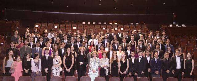 A continuación, Su Majestad Doña Sofía entregó los Diplomas a los alumnos más sobresalientes en las cátedras de violín, viola, violonchelo, contrabajo, flauta, oboe, clarinete, fagot, trompa, trompeta, piano, canto, composición, dirección de orquesta y música de cámara (cuartetos de cuerda, de viento y grupos con piano).