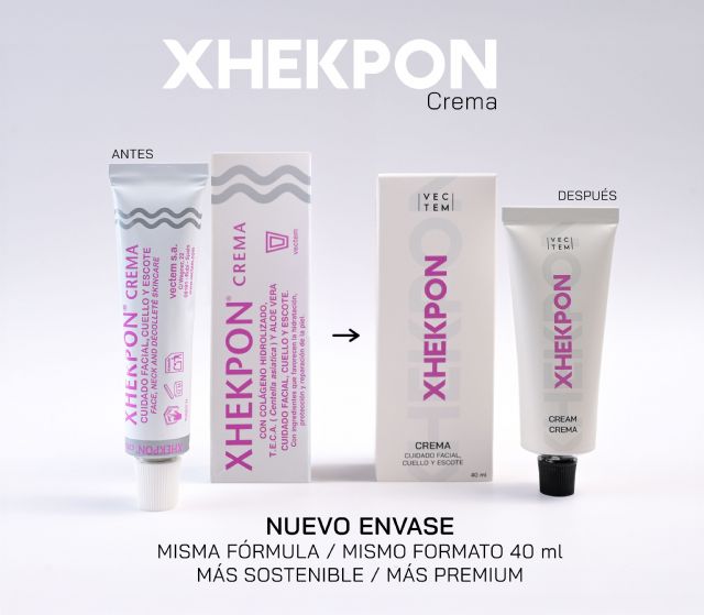 El nuevo envase de Xhekpon® crema, refleja el alto estándar de calidad del producto, alineándose con las demandas actuales de sostenibilidad y estética premium. Se mantiene su fórmula antiedad, con colágeno hidrolizado, centella asiática (TECA) y aloe vera; y utilizada por millones de personas durante las últimas décadas para rejuvenecer la piel de rostro, cuello y escote. Xhekpon® crema es uno de los productos de dermocosmética más copiados en el mundo