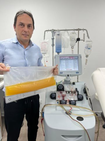Durante una sesión ambulatoria (que dura entre 1 y 2 horas), se extrae la sangre del paciente, se separan las células sanguíneas del plasma líquido, se descarta este último (que contiene mediadores inflamatorios y compuestos acumulados que son dañinos para el propio cuerpo) y se reemplaza por una solución estéril como albúmina. Luego, la sangre purificada vuelve al cuerpo del paciente.