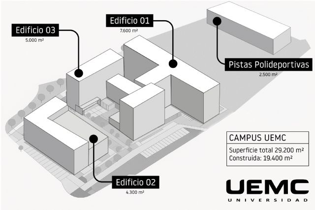 El nuevo Edificio 03 del Campus UEMC cuenta con 5.000 metros cuadrados distribuidos en cuatro plantas y un garaje subterráneo. Dispone de una veintena de aulas versátiles con capacidades de entre 28 y 90 estudiantes, un Salón de Actos con capacidad para 150 personas y una sala polivalente (Espacio UEMC+) preparada para acoger eventos de diversas características. El edificio está diseñado para acoger a 1.200 estudiantes por turno, además de profesorado y personal. Su incorporación permitirá reorganizar el campus, destinando este edificio principalmente a la docencia y concentrando en el Edificio 02 los laboratorios y actividades asistenciales de titulaciones del área de la salud como Enfermería, Psicología, Terapia Ocupacional, Odontología y Fisioterapia.