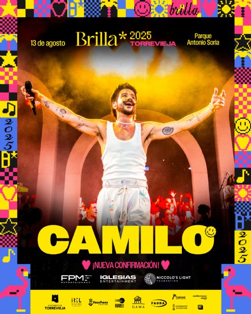 Alicante, 8 de julio de 2025 | El 13 de agosto, el Parque Antonio Soria se vestirá de gala para recibir a uno de los artistas latinos más queridos del panorama musical internacional en la actualidad desde que debutara en 2008 tras ganar el concurso de talentosFactor X. Camilo, el cantante, compositor y músico, será el encargado de cerrar la edición 2025 del festival Brilla Torrevieja con un concierto que promete emociones, energía y una conexión única con sus fans, quienes conforman 'La Tribu'.
