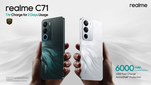 El teléfono está equipado con un chipset Unisoc T7250 y alimentado por una batería de 6.000 mAh que admite carga rápida de 45W y carga inversa de 6W. El C71 cuenta con la batería de mayor capacidad de su segmento, ofreciendo hasta dos días de uso con una sola carga. En cuanto al software, incluye la interfaz realme UI 6.0 basada en Android 16 y la conectividad, soporta 4G, Wi-Fi 5 y Bluetooth 5.2.